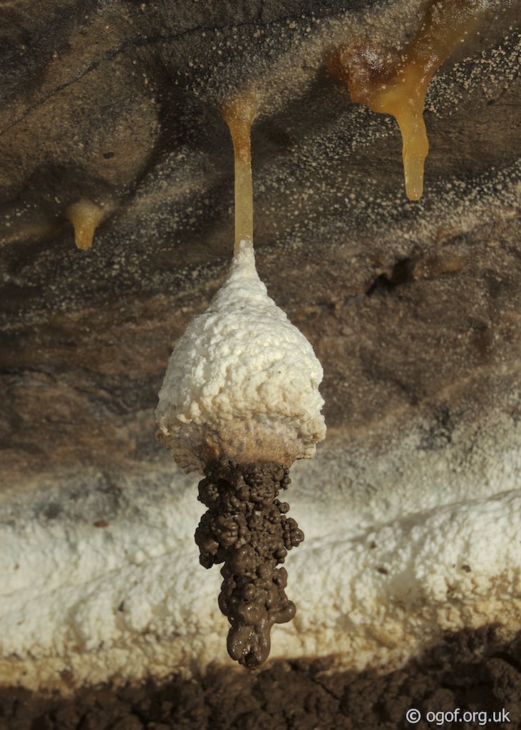 The Fault Series is a section of high level passages that lead off from the main route into OFD1. Fine calcite slopes lead up to large fossil passage which contain some unique mud and stal formations.