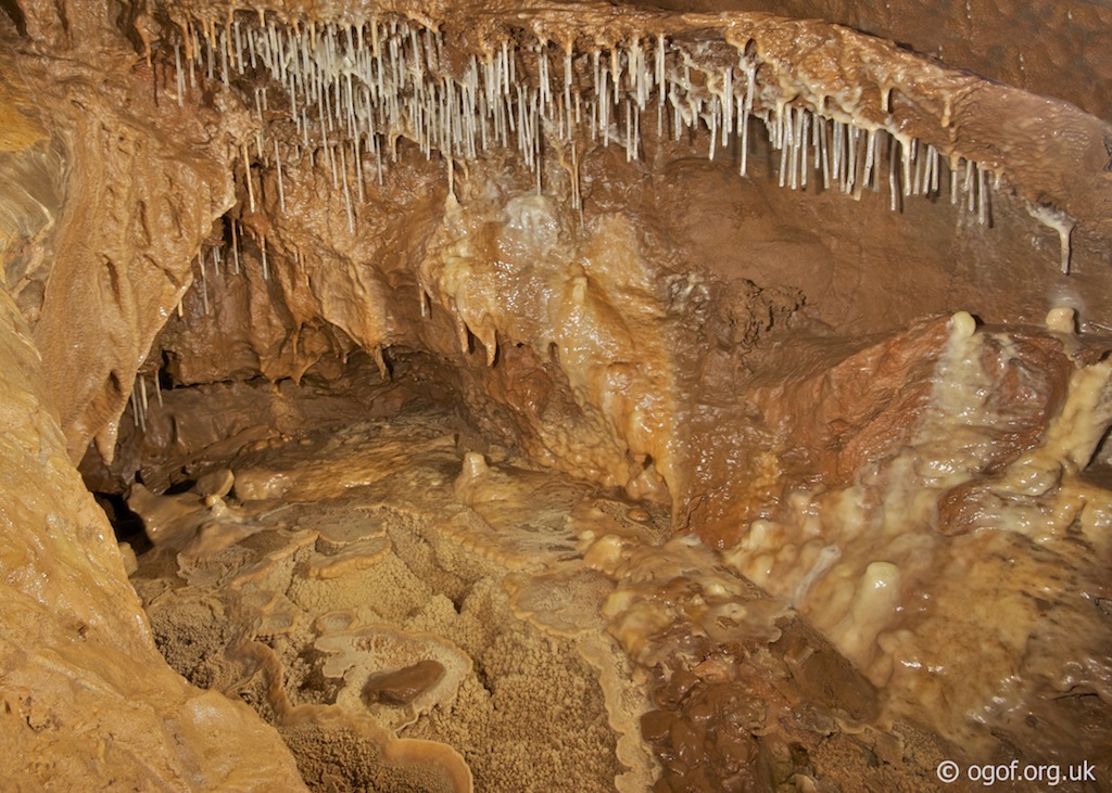 This cave is formed in steeply dipping beds of limestone and is out of character with most caves in South Wales. In many ways it is similar to Ogof Fechan as the cave is extremely flood prone and most passages are covered in a thin film of mud making the cave feel very oppressive. It cannot be understated how at risk of flood this cave is, with debris found up to 2m above the cave sink after heavy rain. In wet weather the cave completely floods in large sections, this is a cave to avoid in unsettled weather.
